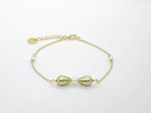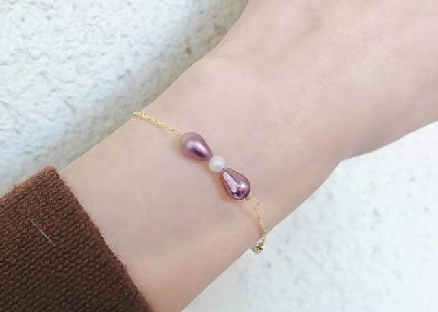 しずく型のチェコガラスパールにシルキーパールを組み合わせてリボンにしてみました♪
